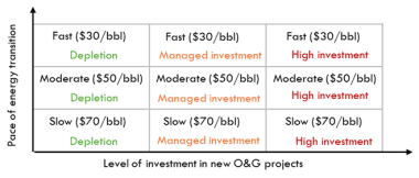 - New gas projects erode value under a moderate-paced transition seeing gas equivalent prices of $50/bbl.